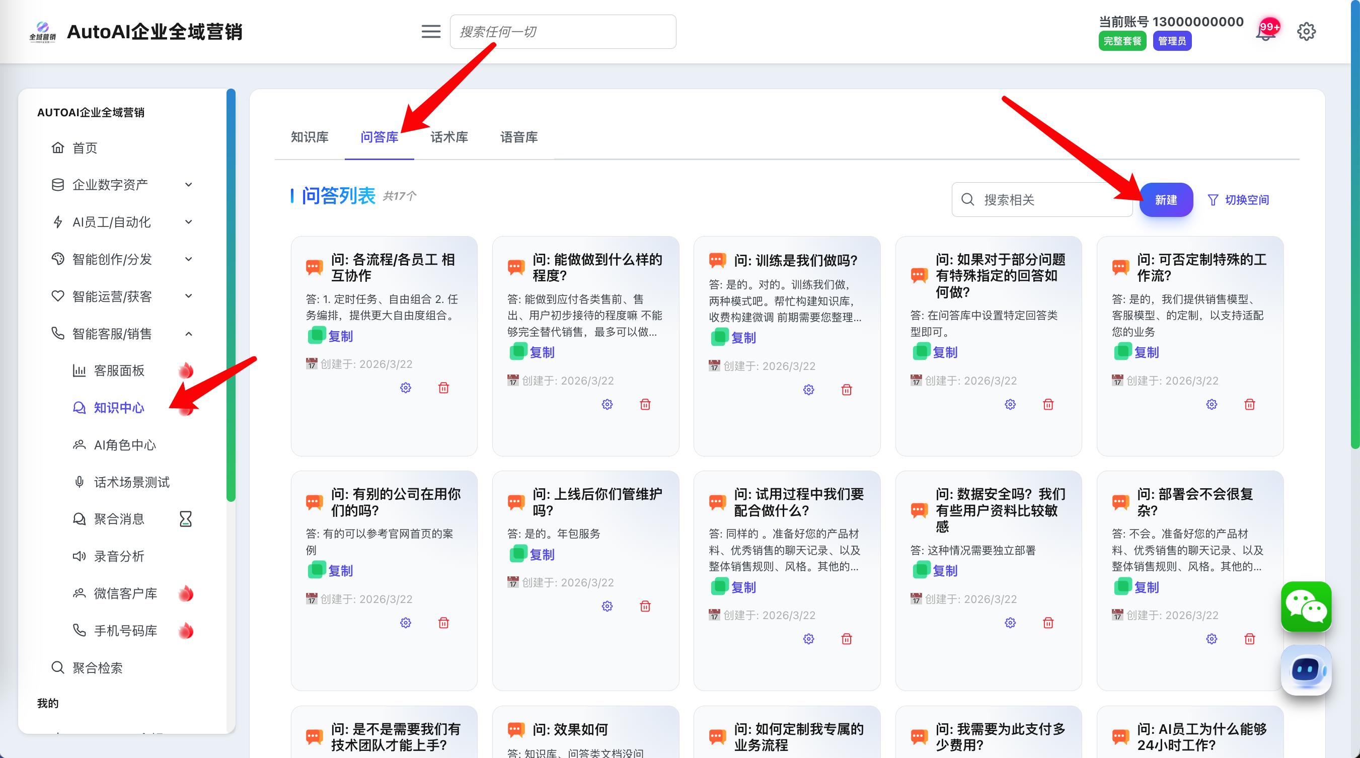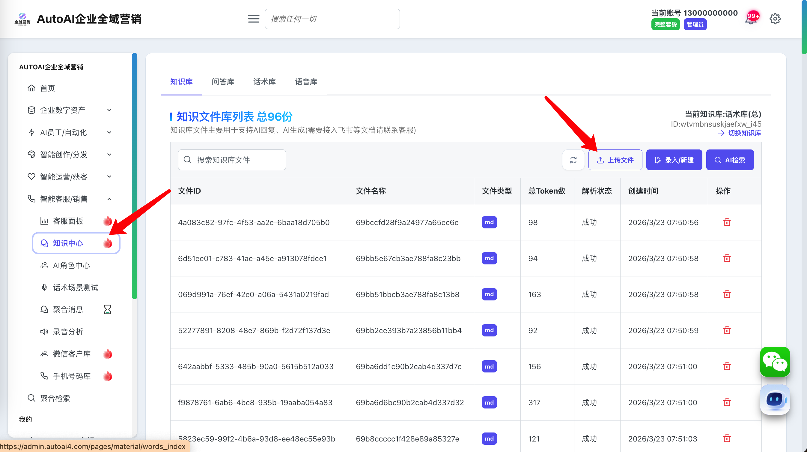 在菜单栏里点击 “企业知识库”,进来后根据下图步骤,上传任意word文件