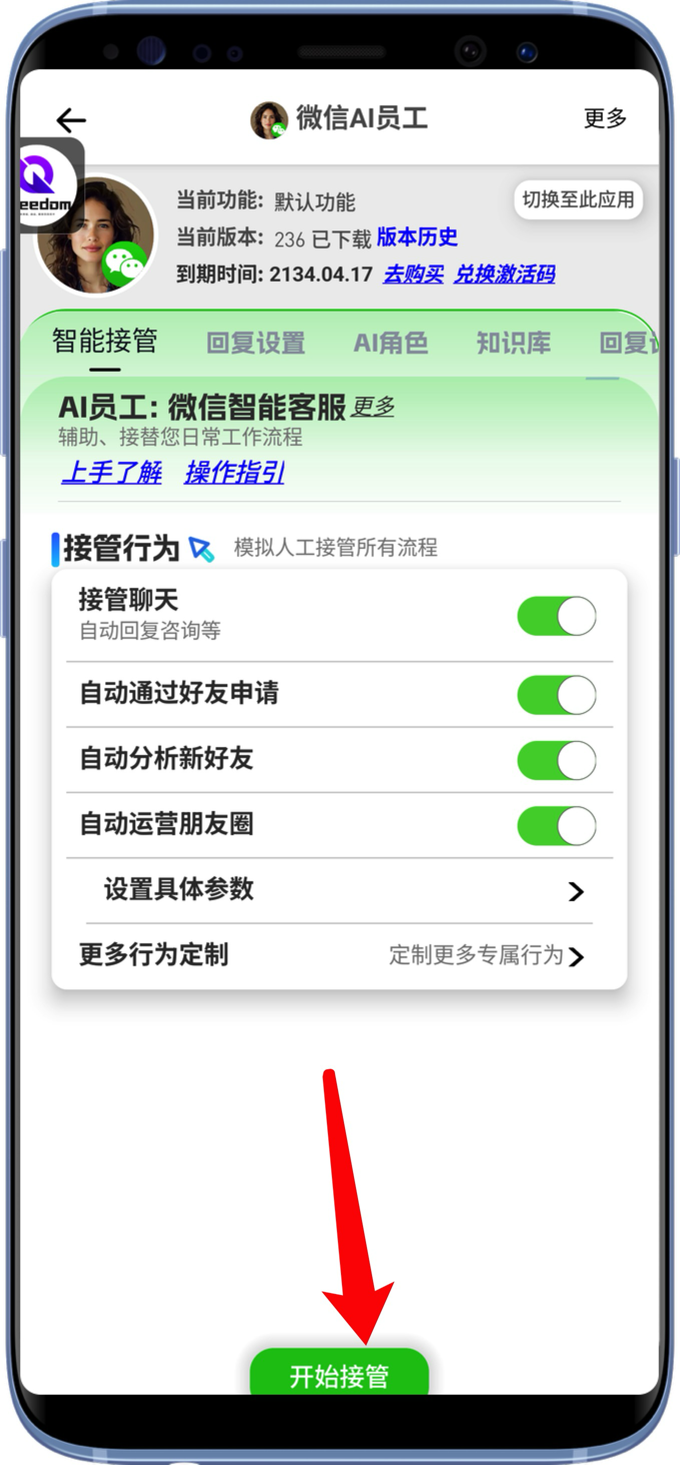 在应用里选择你的AI员工,点击进入 点击立即开始、或者悬浮里的开始 手动触发后,24小时都在运行,直到你停止他。