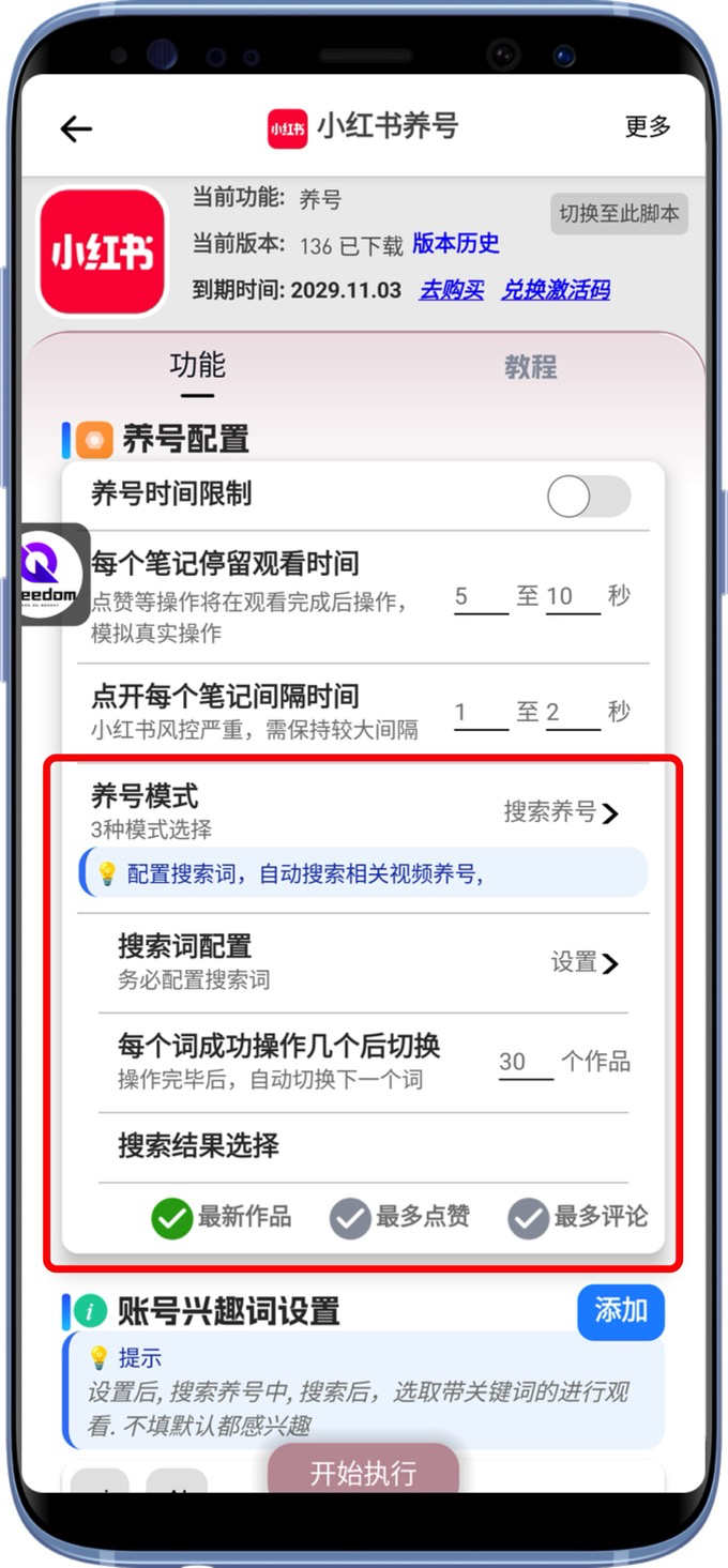 通过多个搜索词定向覆盖更多类型的视频 这里是成功操作后才计数的(成功操作是指,有命中兴趣词,真正开始观看的 )
