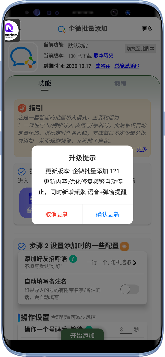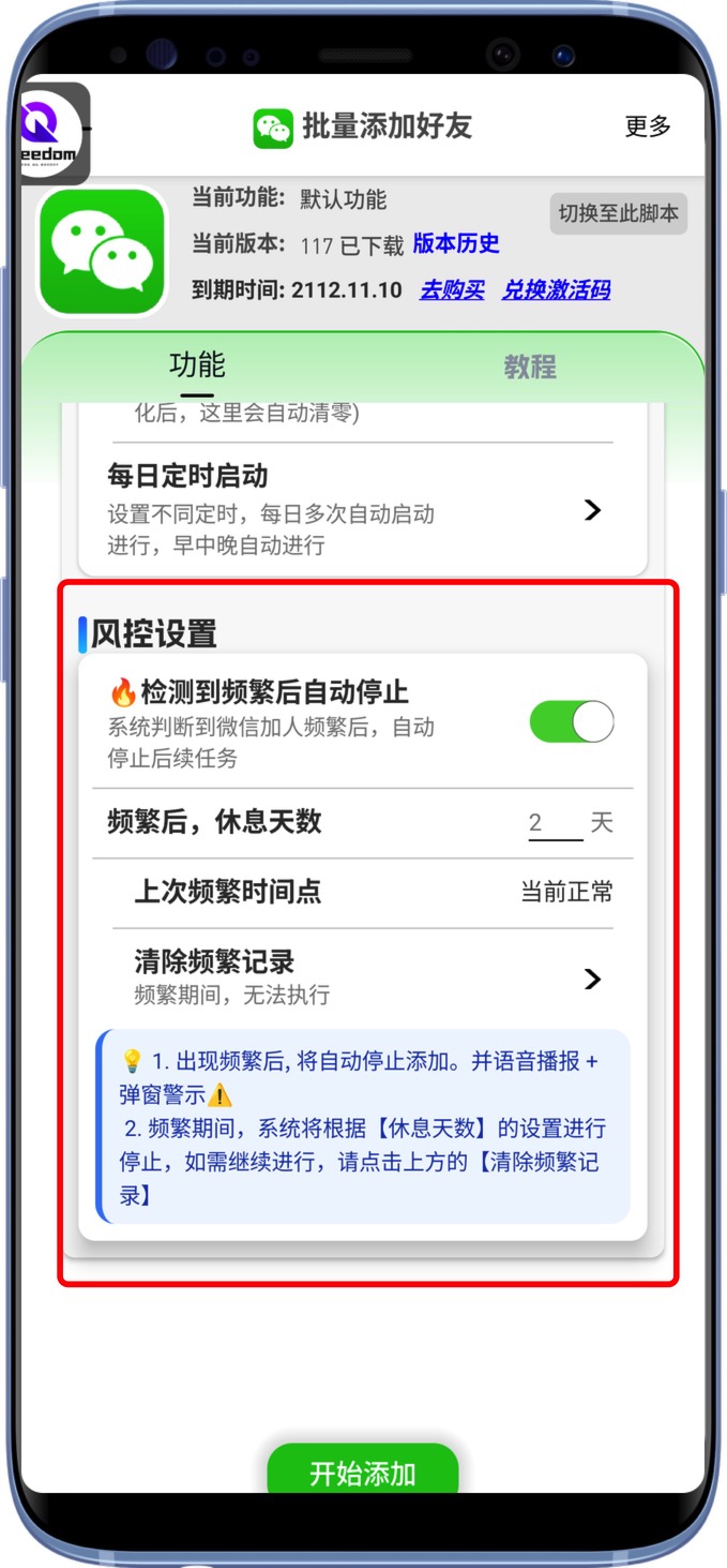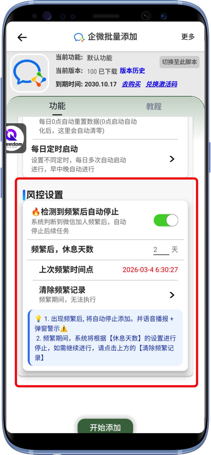 ✅ 智能防频繁设置、定时分批添加、频繁自动停止