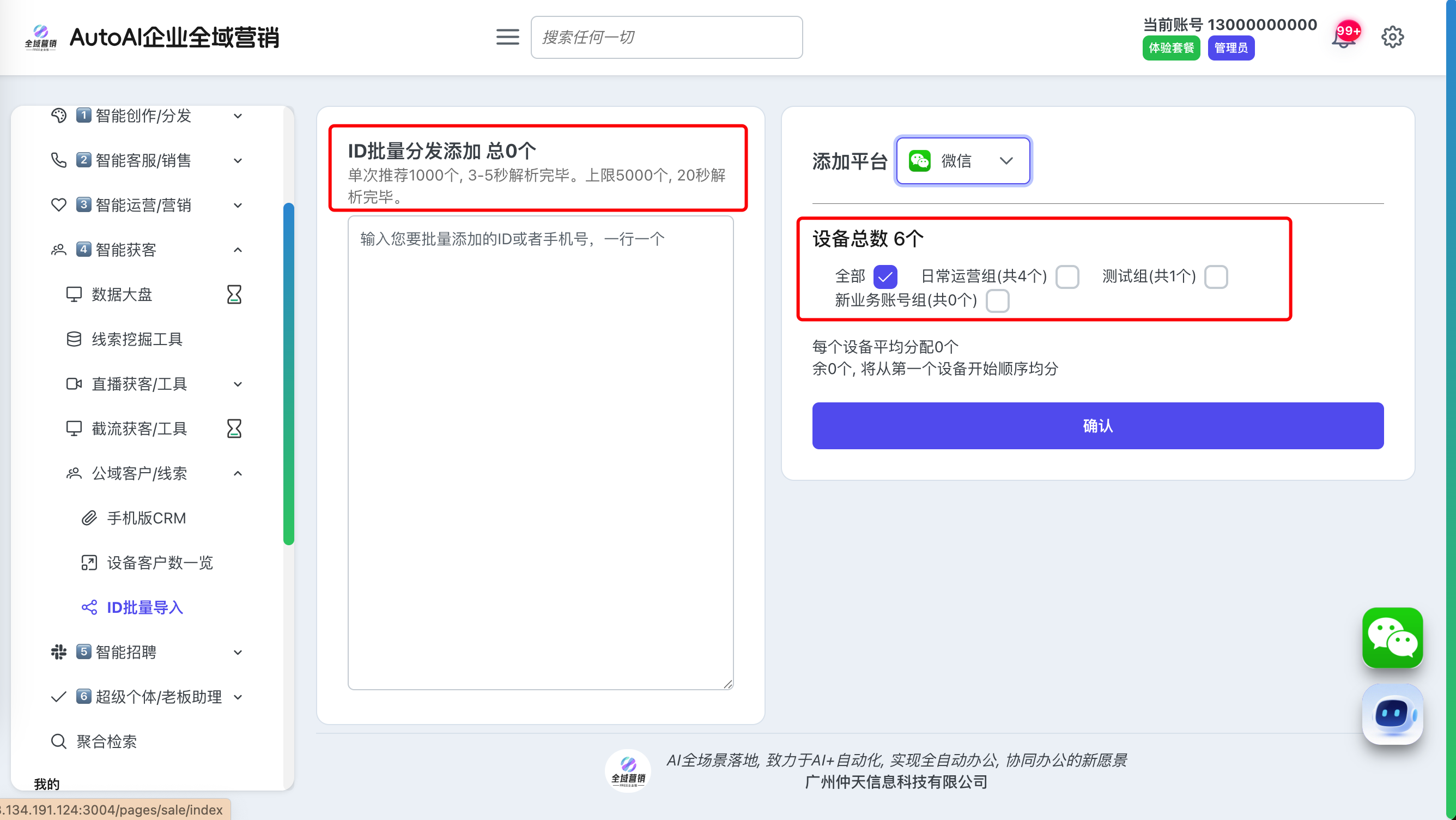✅ 支持批量导入号码管理、客户名单智能解析。