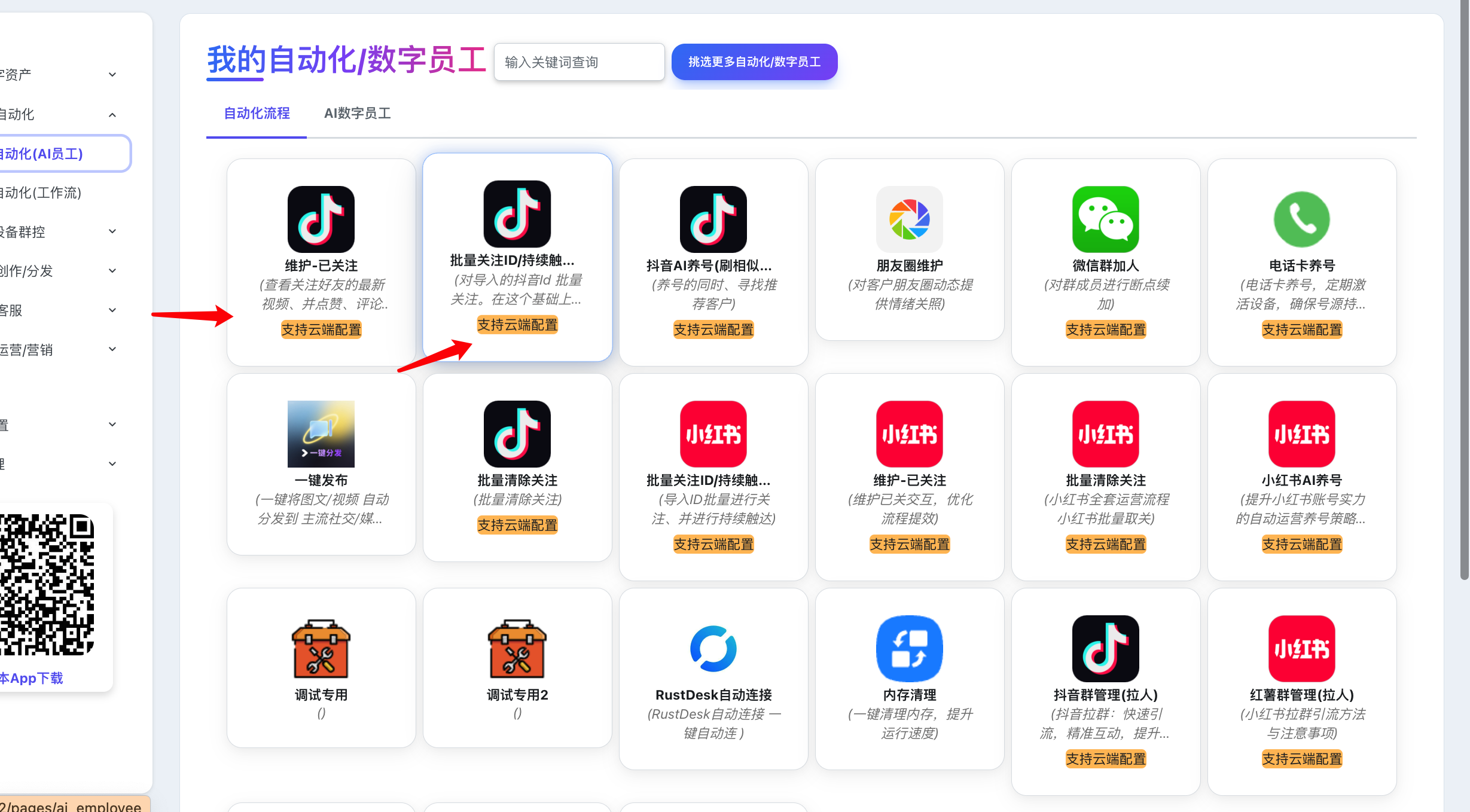 进入到“手机自动化中”,带【支持云端配置】标签的 都可以进行云端配置,并且对所有设备进行一键同步 手机每次启动任务时,都会自动去云端拉取最新配置
