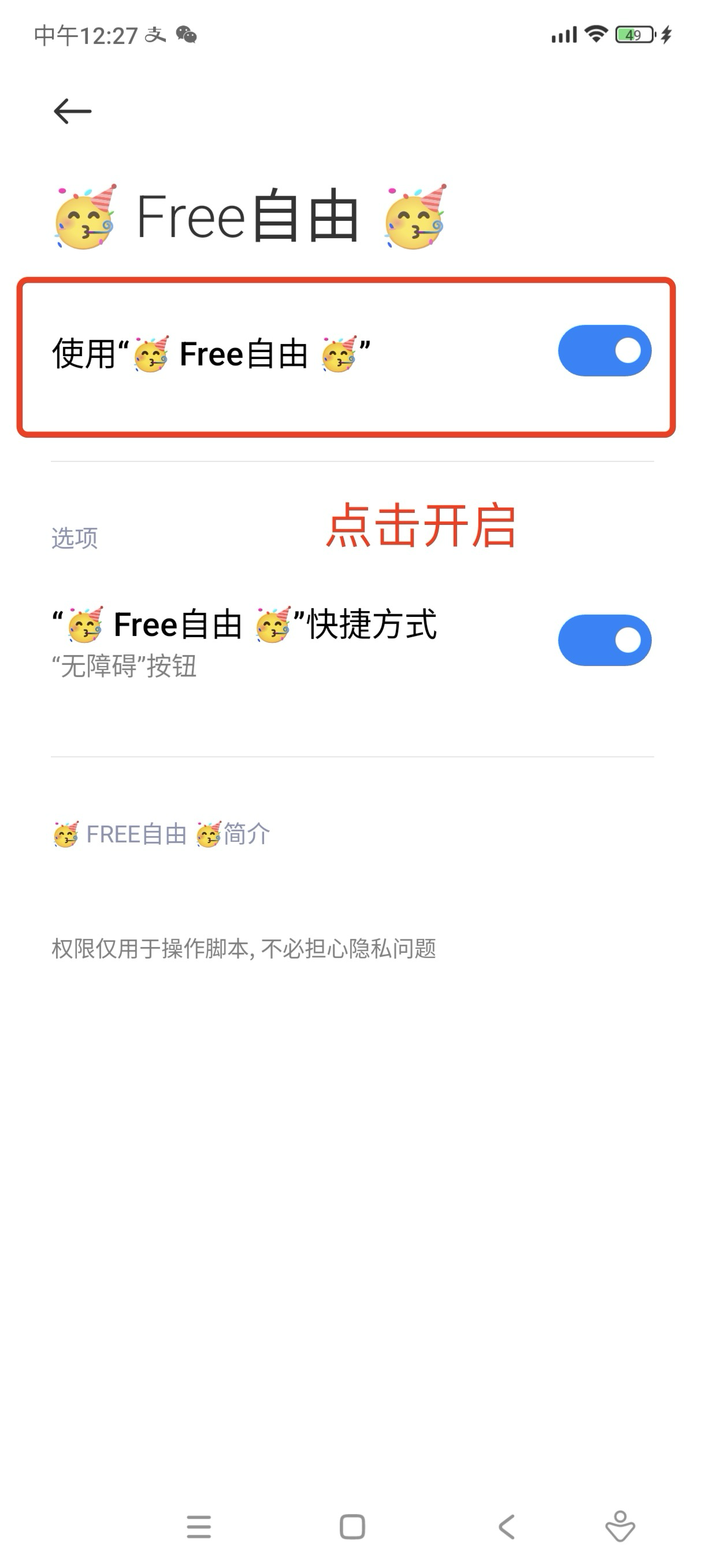 有两个权限是必备,悬浮窗权限和无障碍权限,这两个是手机跑起自动化必备的。现引导如何开启 实际操作过程,程序内也有自带指引,网页文档供参考使用。