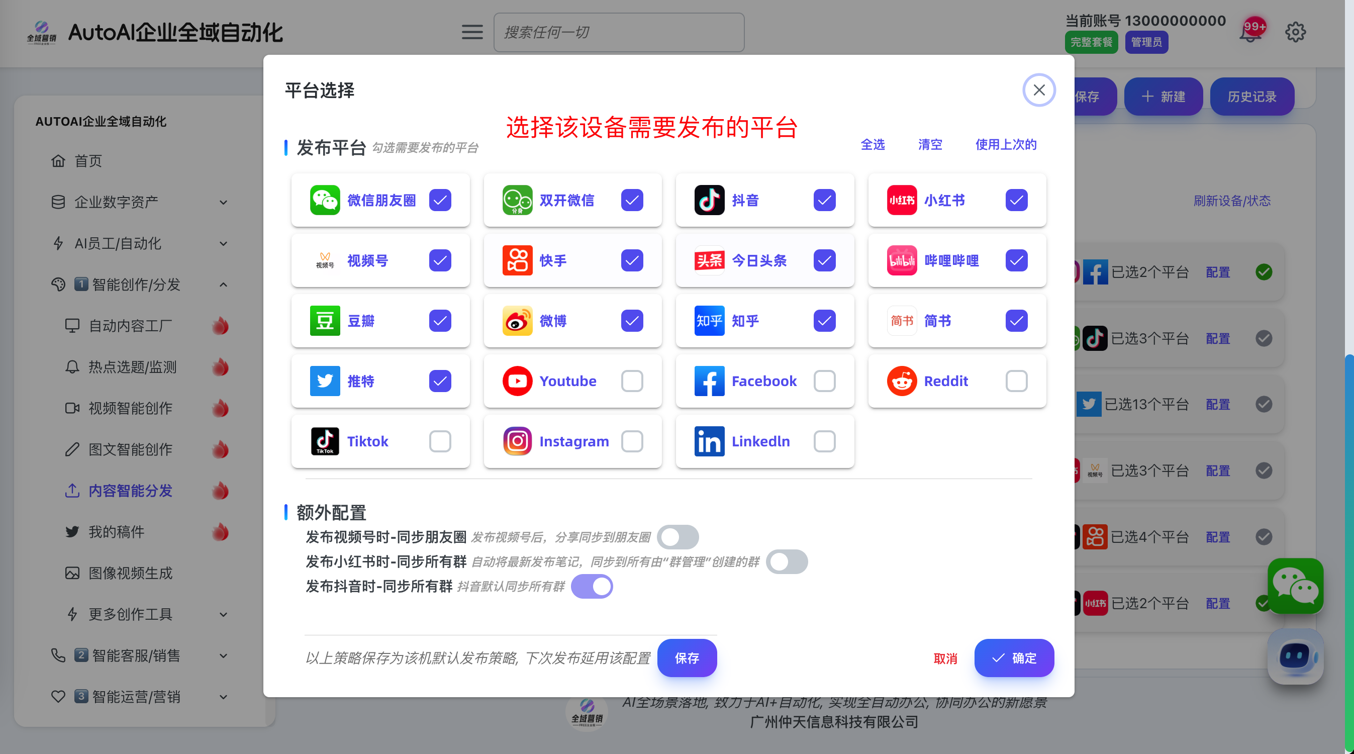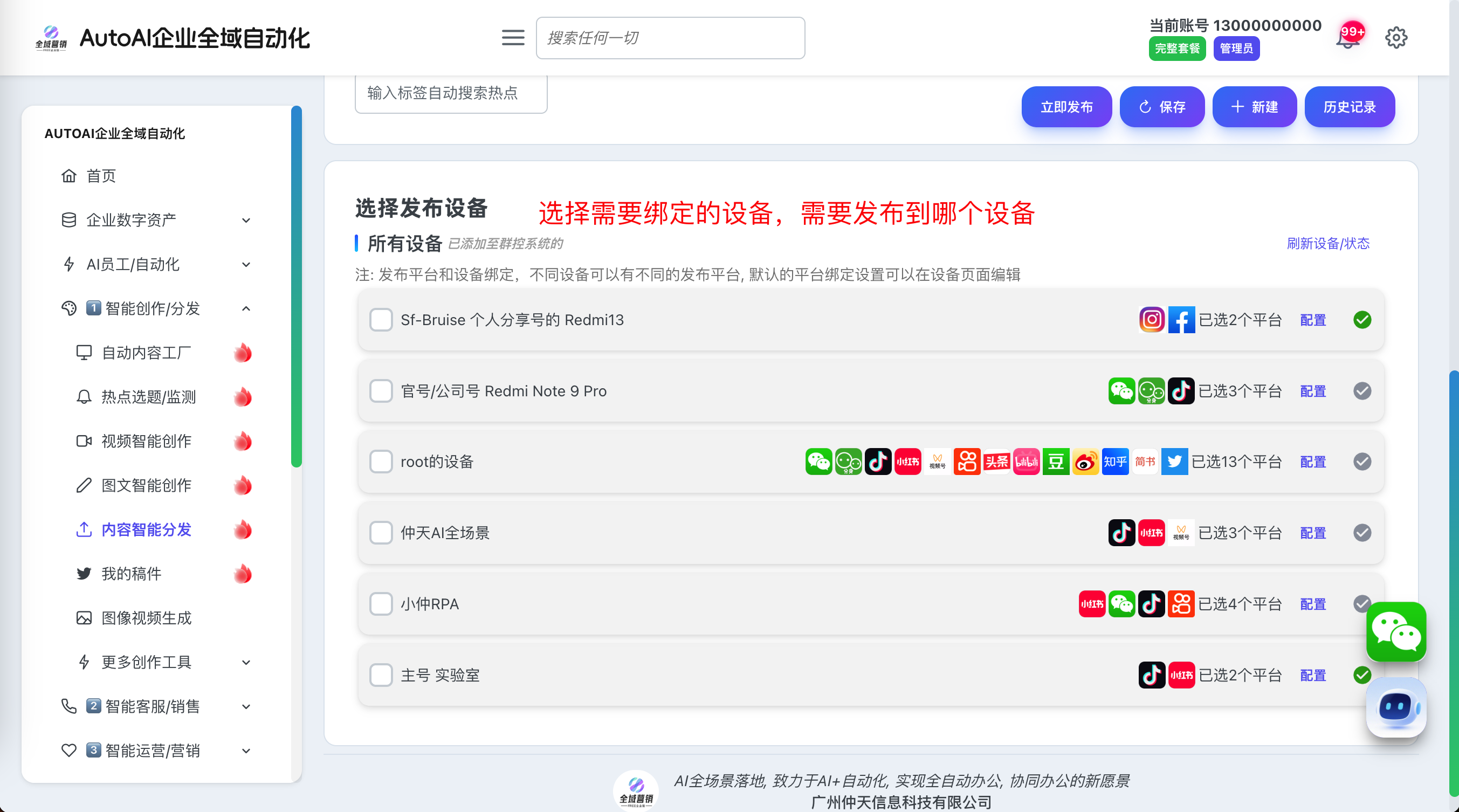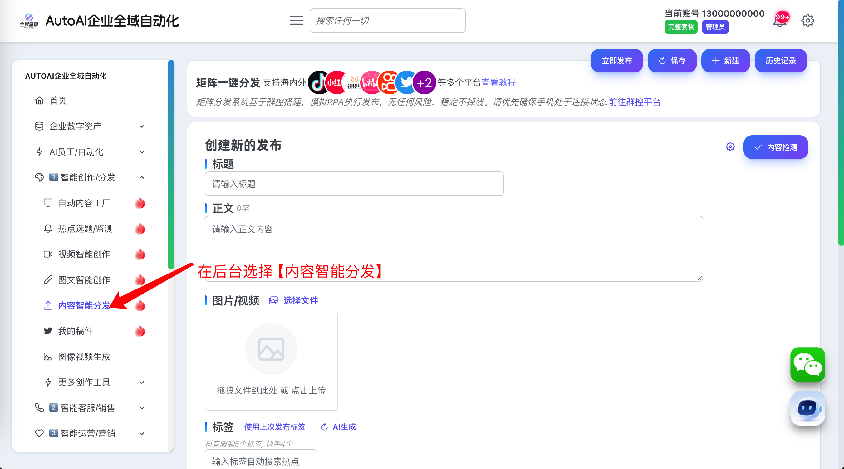 全域营销-创作分发套餐下的工具,致力于实现获客、运营、转化 全自动化、智能化流程