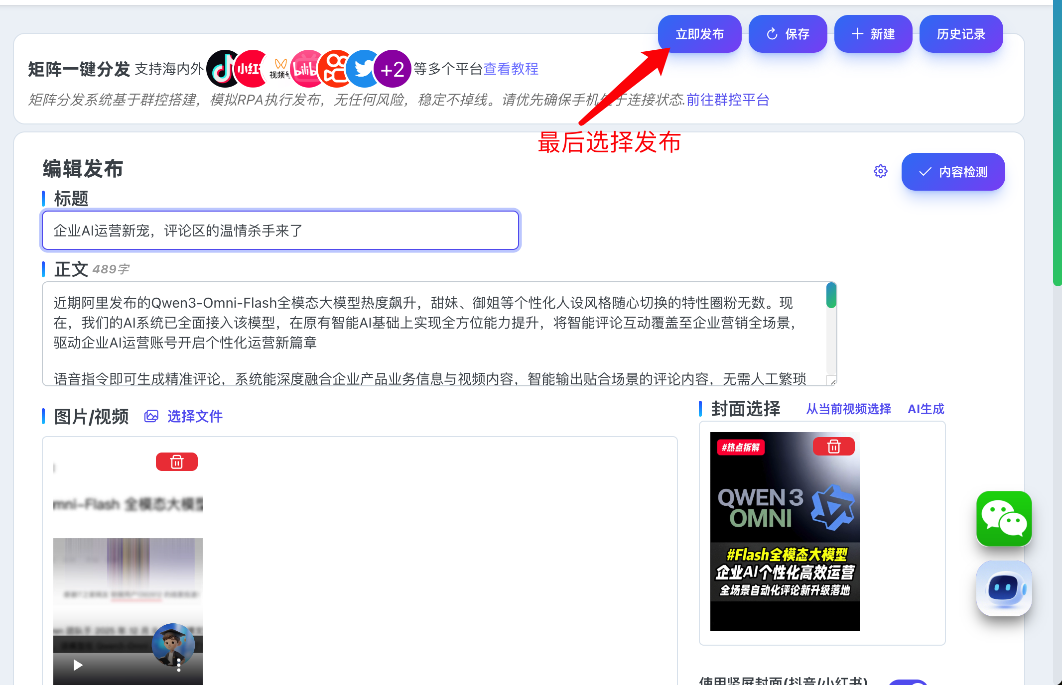 ✅提供结合视频、图文批量膜拜生成,高度自动化,实现内容创作到发布的完整自动化。