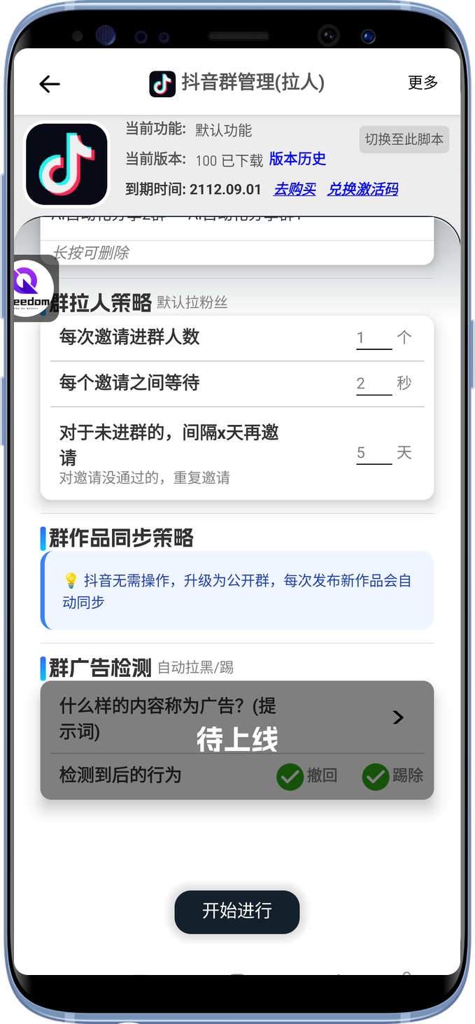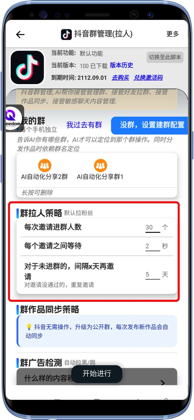 - 群管理需要抖音升级最新版(36版本或者37版本),老版本的建群策略也不友好,500粉下只允许一个群。