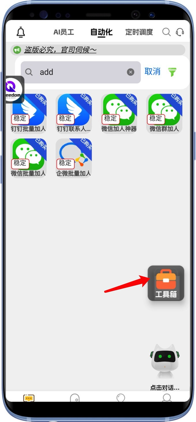 打开手机App,点击首页的工具箱,进入云控管理、点击验证加入、获取设备码