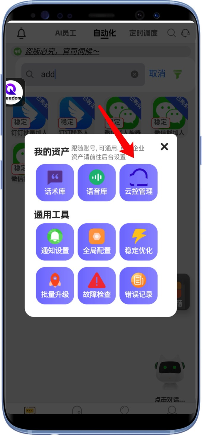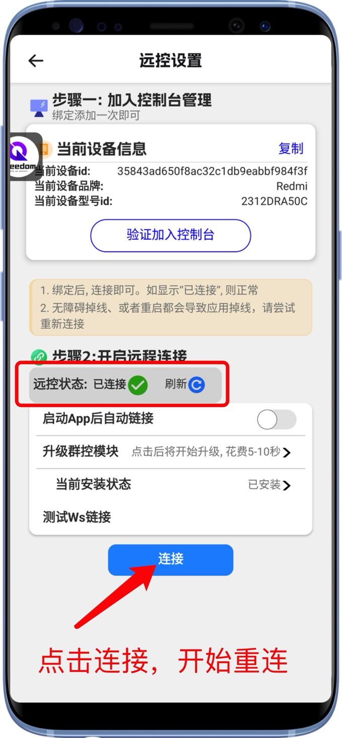 - 没效果,点击升级群控模块,自动重新下载模块重新连接(部分时候是因为群控模块升级损坏导致)