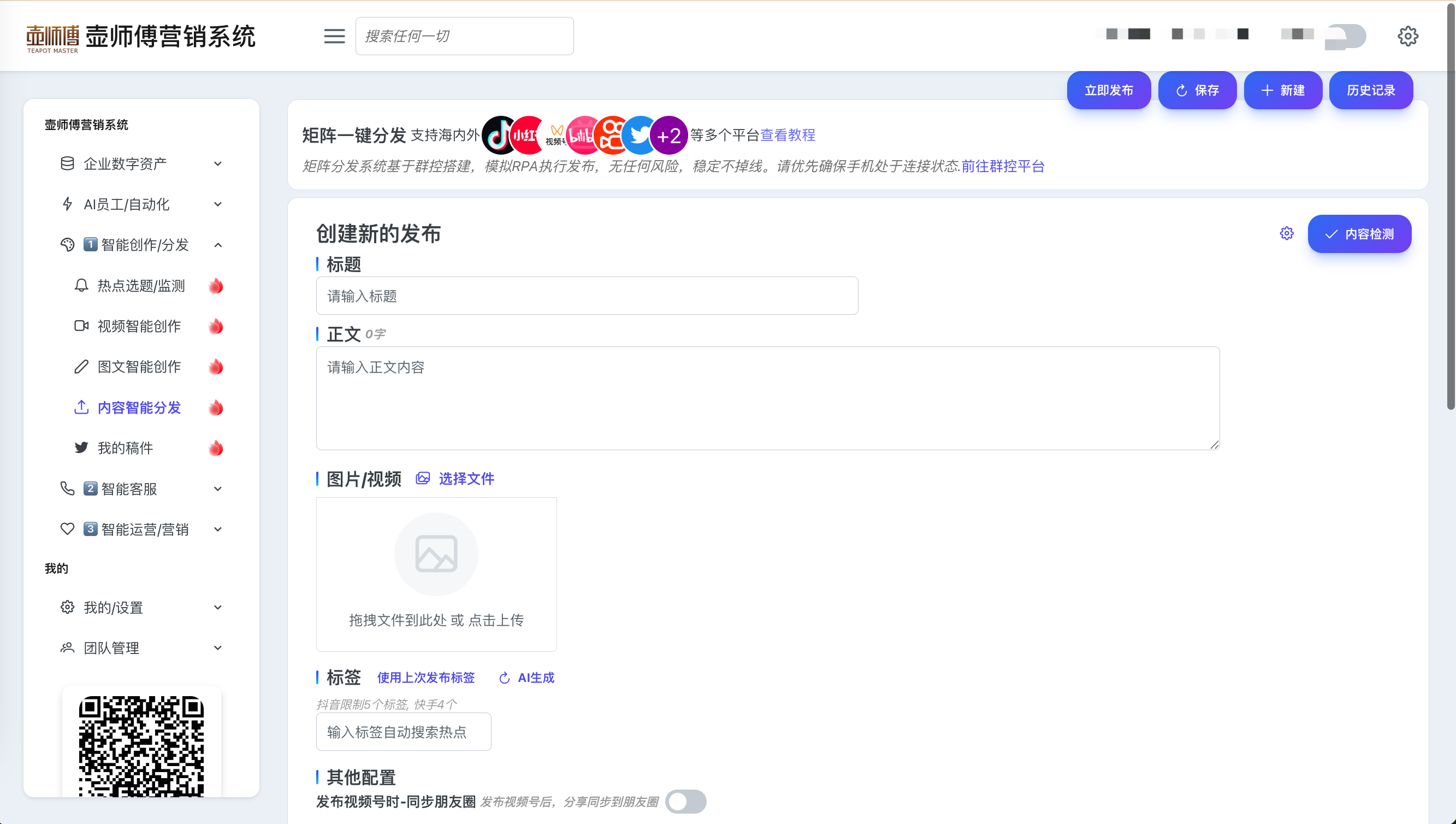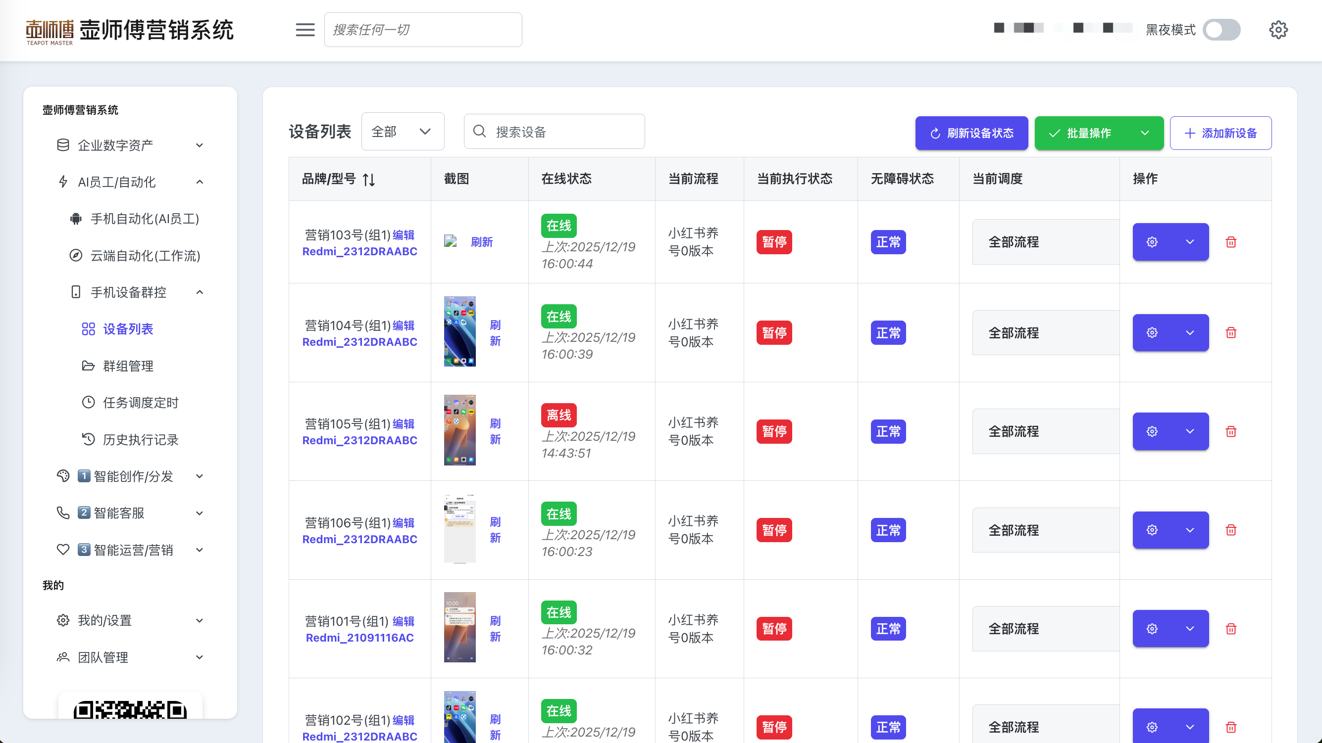 - 客户购置10个设备、10个 手机号、10个多平台矩阵账号。