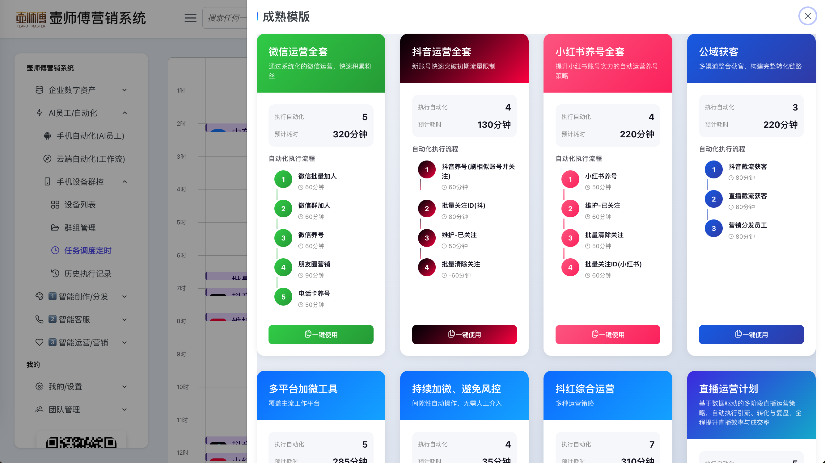 在自动化运营、获客系统中,根据需求搭配好自我需要的自动化营销、获客任务,开始每日运营。