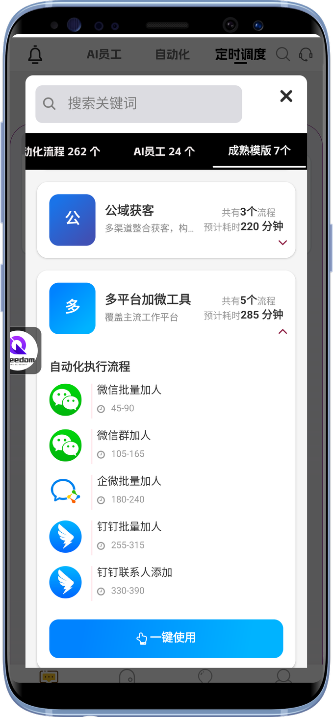 “除了AI给您编排流程,还有更多成熟流程等您体验”。 您可以直接在手机查看更多