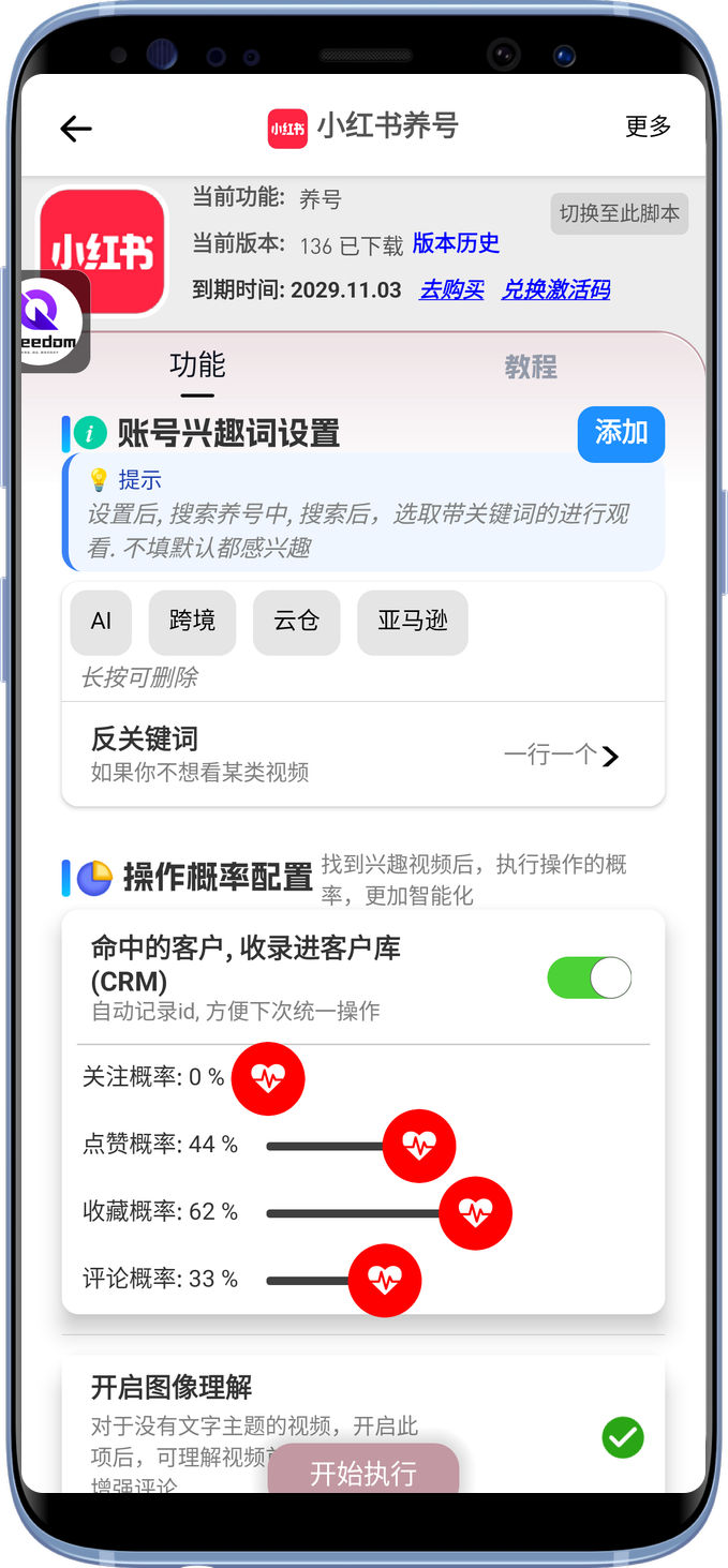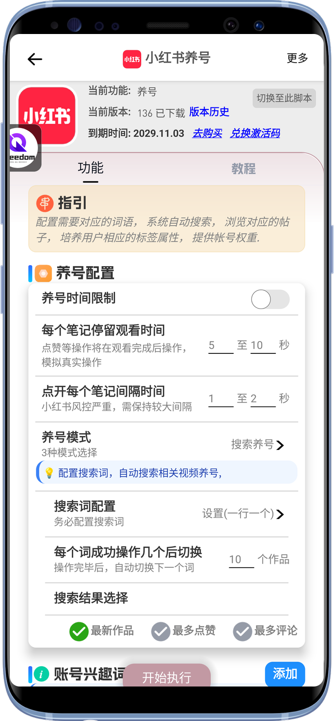 - 养号自动去重,不会二次刷已经操作过的视频。避免重复点赞、重复评论。