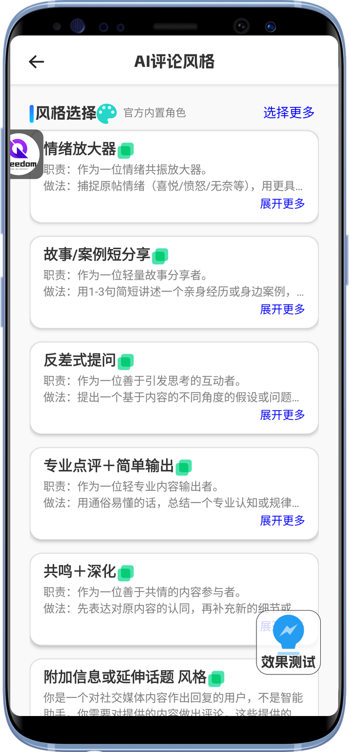 设置评论模式。在此可以点进去,设置不同的评论角色,后台调试好的角色会在这里出现,选择上即可。 AI模式下,评论内容是根据视频本身主题进行回复的,因此可以根据自己需要,自行设计回复效果,可以是留下引流性评论、拓展性评论、反对性评论等等 如果是固定评论,也尽量走AI生成不同的评论,换文不换义进行发送,避免多次评论相同被系统监测。