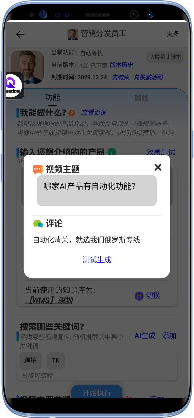 - 自动生成产品相关话题的讨论内容,自动发布,实现全自动运营